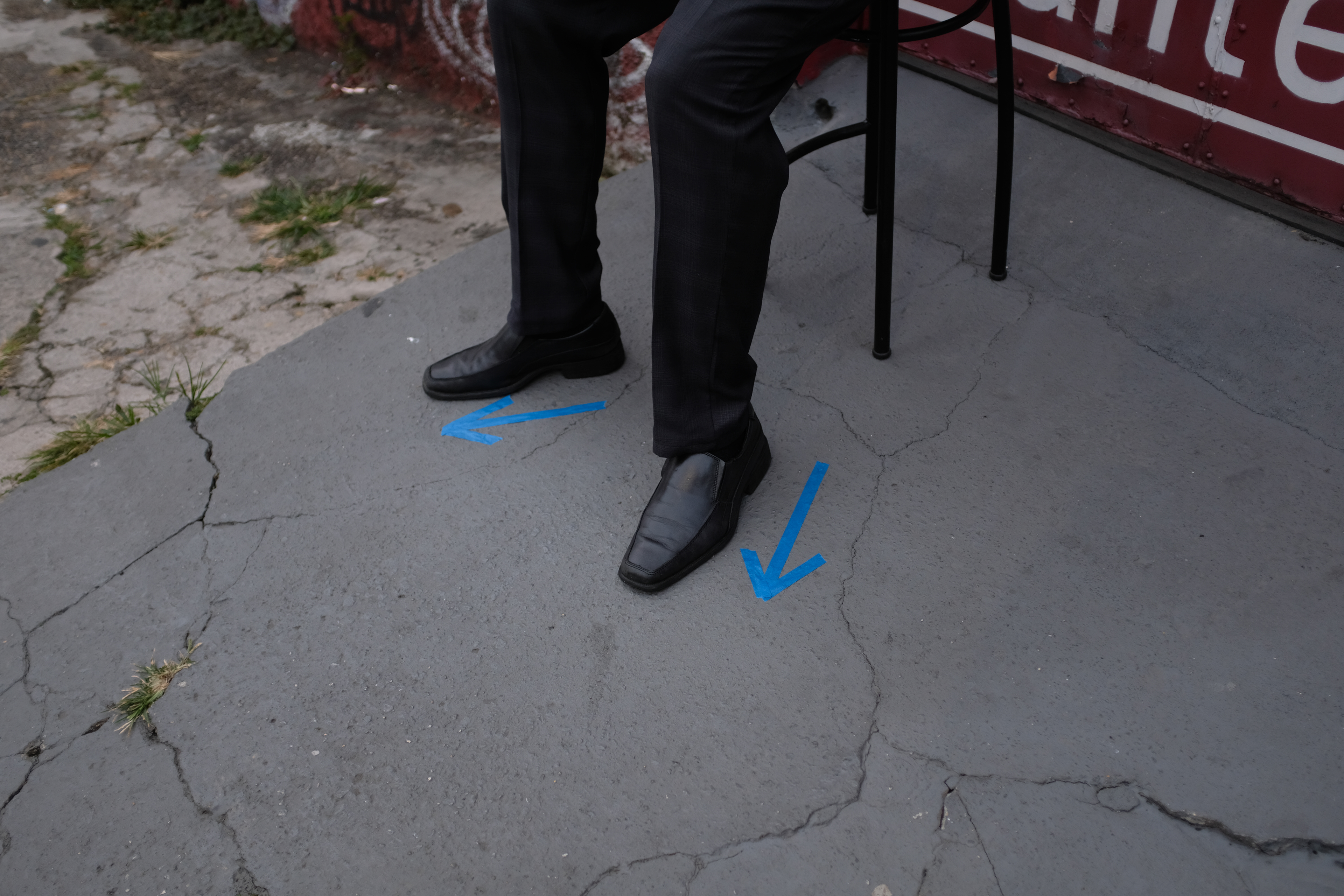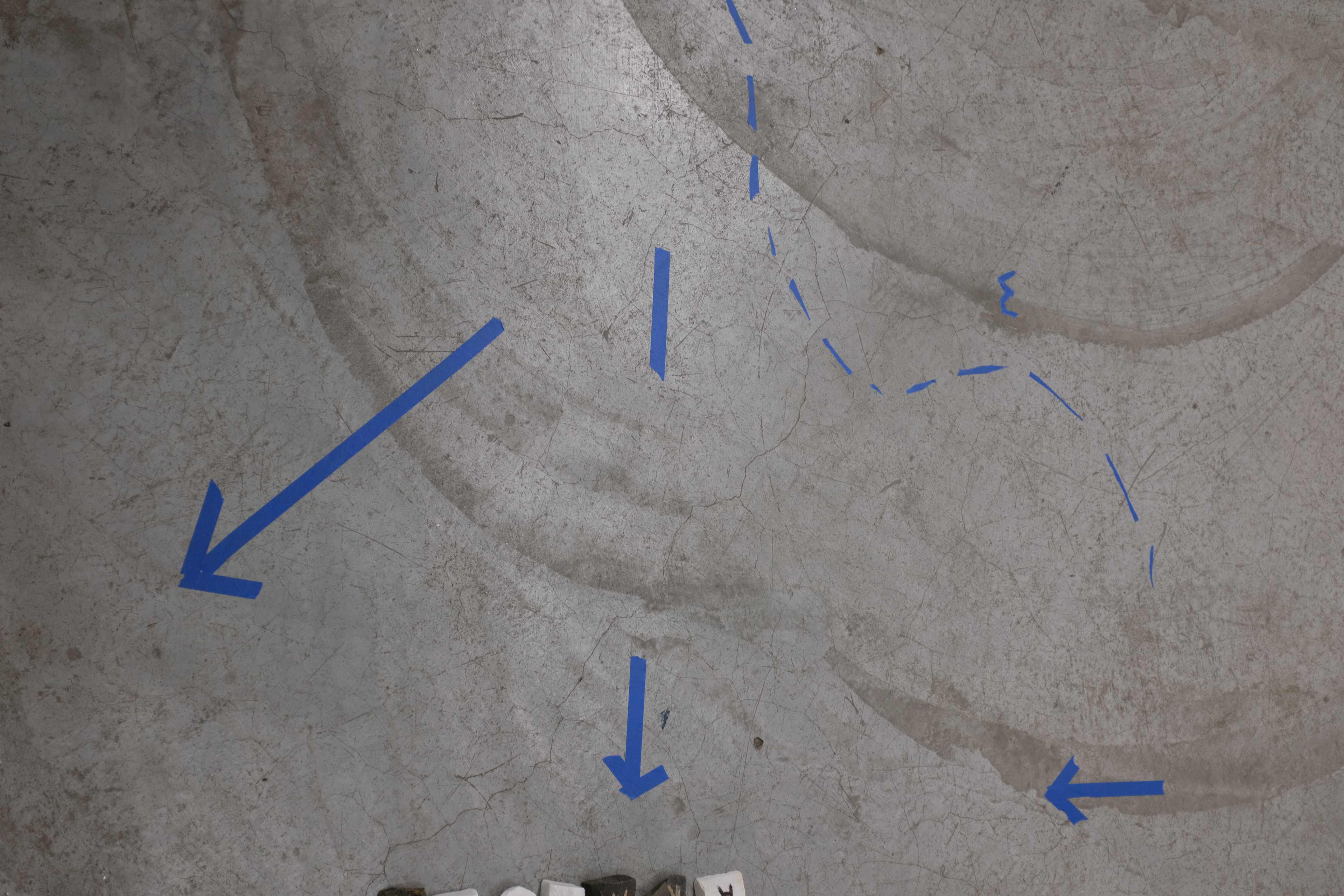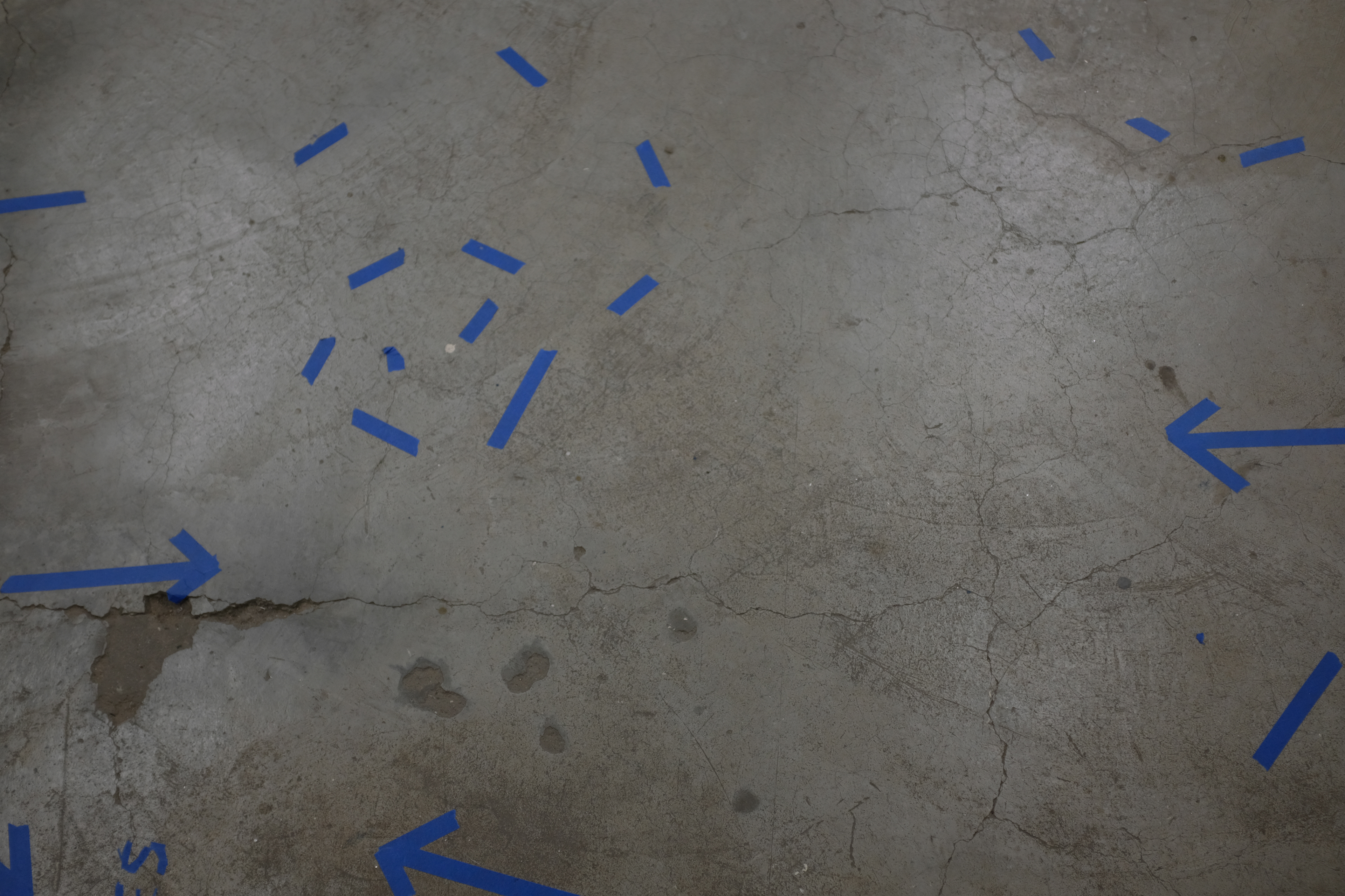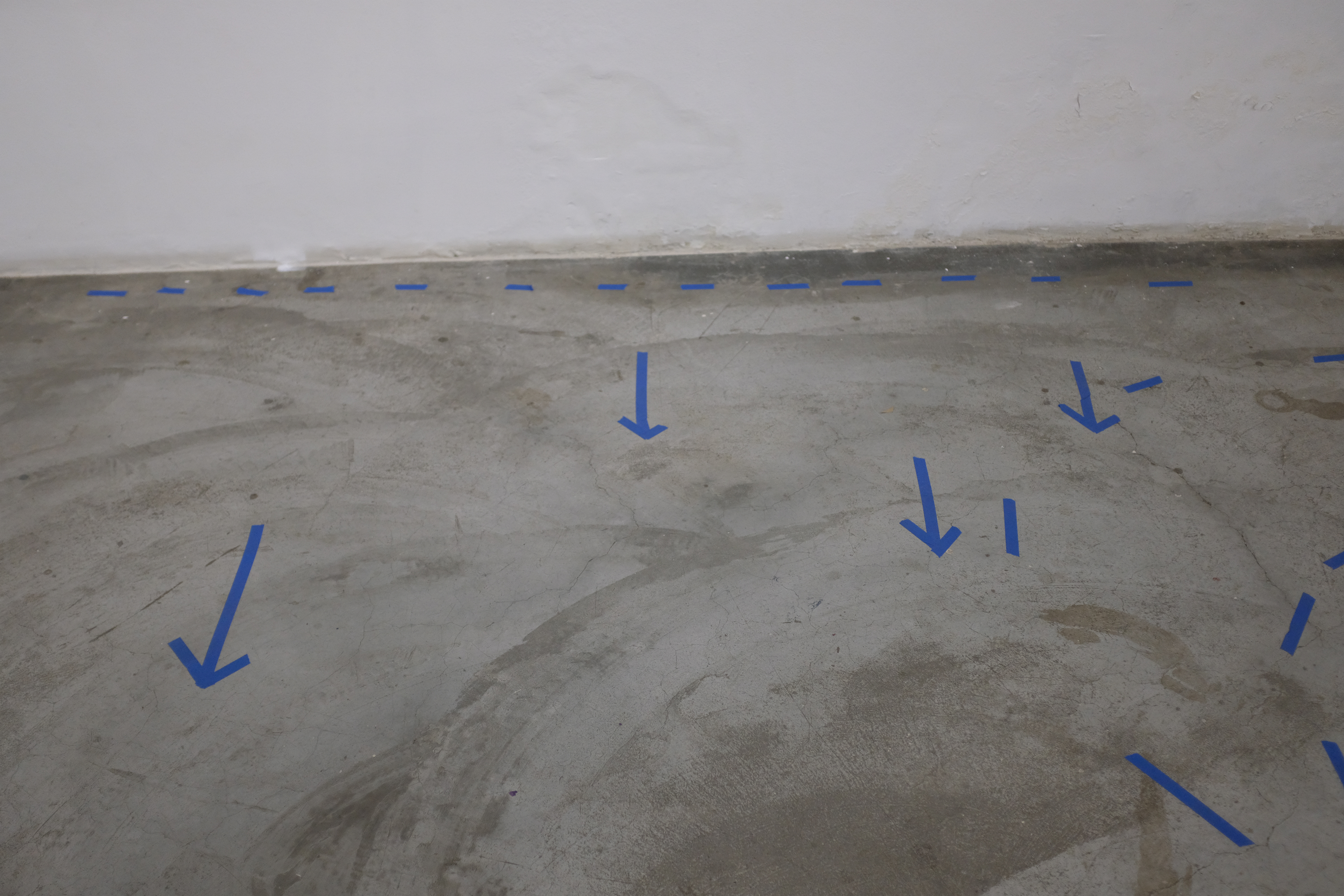 Nesta ação, utilizo de uma fita adesiva azul para traçar no chão e nas paredes certos desenhos em reação direta a agrupamentos de pessoas. Observando as relações e conversas que se desenrolam no espaço, aproximo-me dos grupos e – enquanto ainda dialogam – delimito esquemas, palavras, desenhos, comparação numeral e arquitetônica que transitam entre o descritivo e o fabulatório.