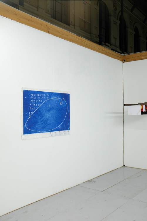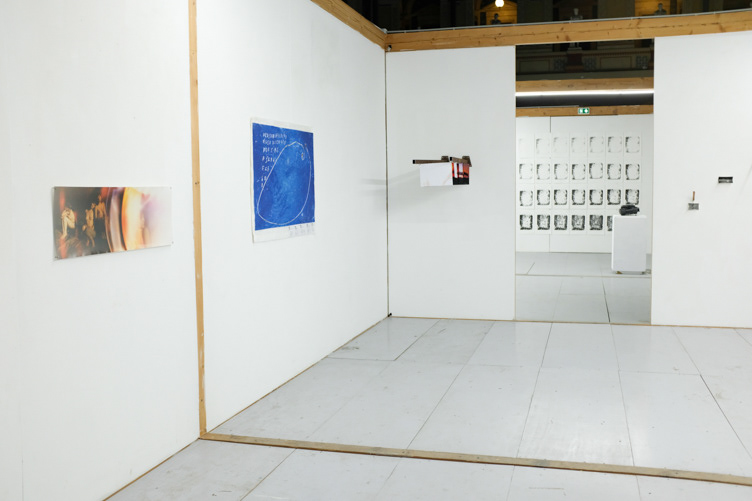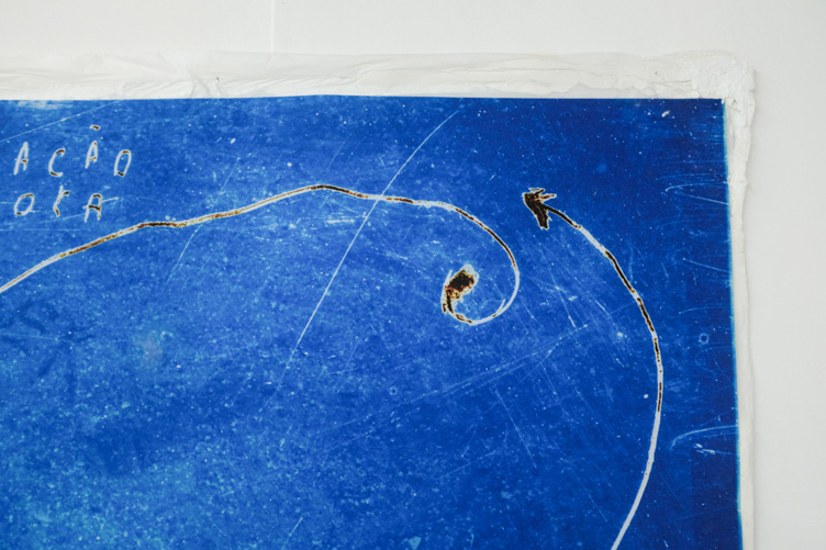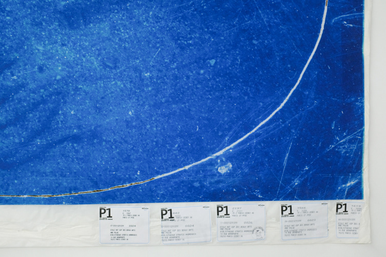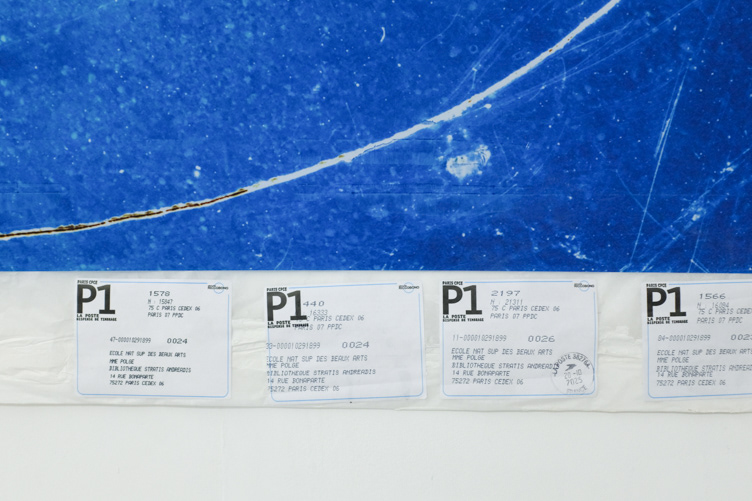 Incisão sobre fotograma, impressão à laser sobre papel calque, papel seda, gesso e adesivos do correio Exposição "lá où tombe la pluie" com atelier Agnès Geoffray Beaux Arts de Paris