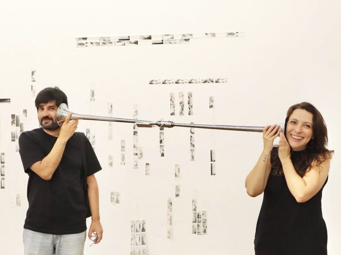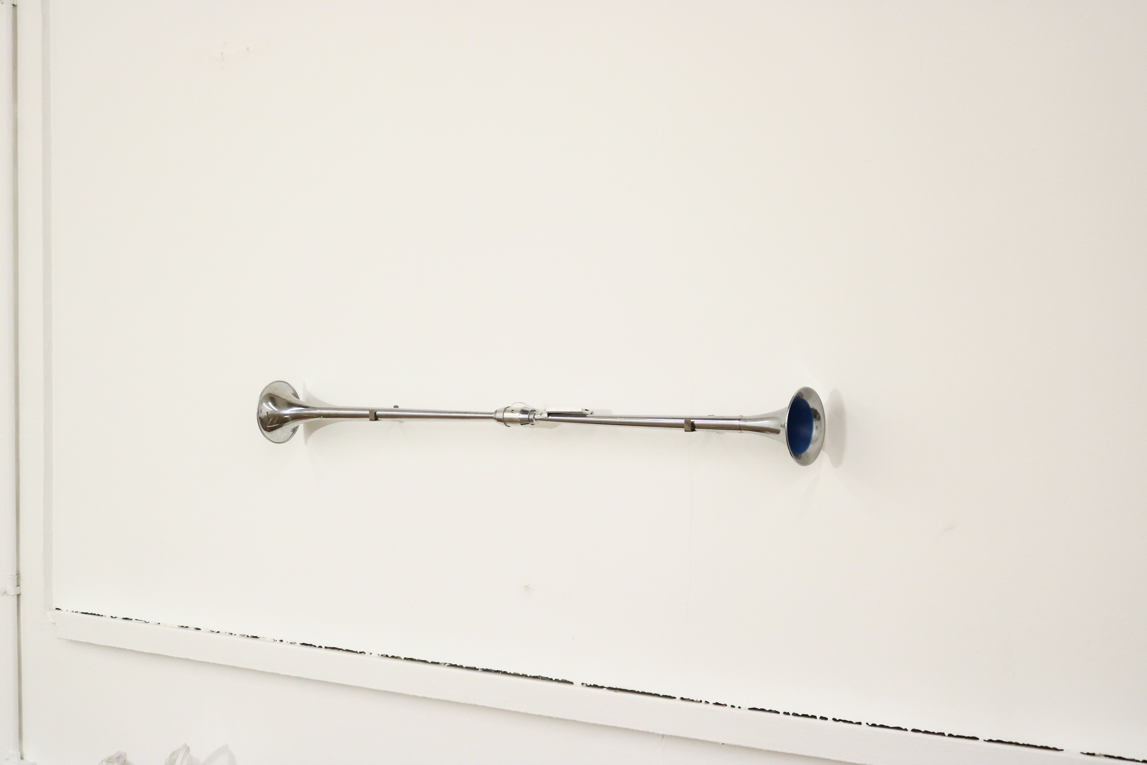 O trabalho tem origem em uma performance realizada no espaço urbano, mas se apresenta no espaço expositivo por meio de uma escultura de instalação sonora. Esse objeto devido o seu comprimento, ao ser utilizado, incentiva movimentos relacionais pelos próprios espectadores.