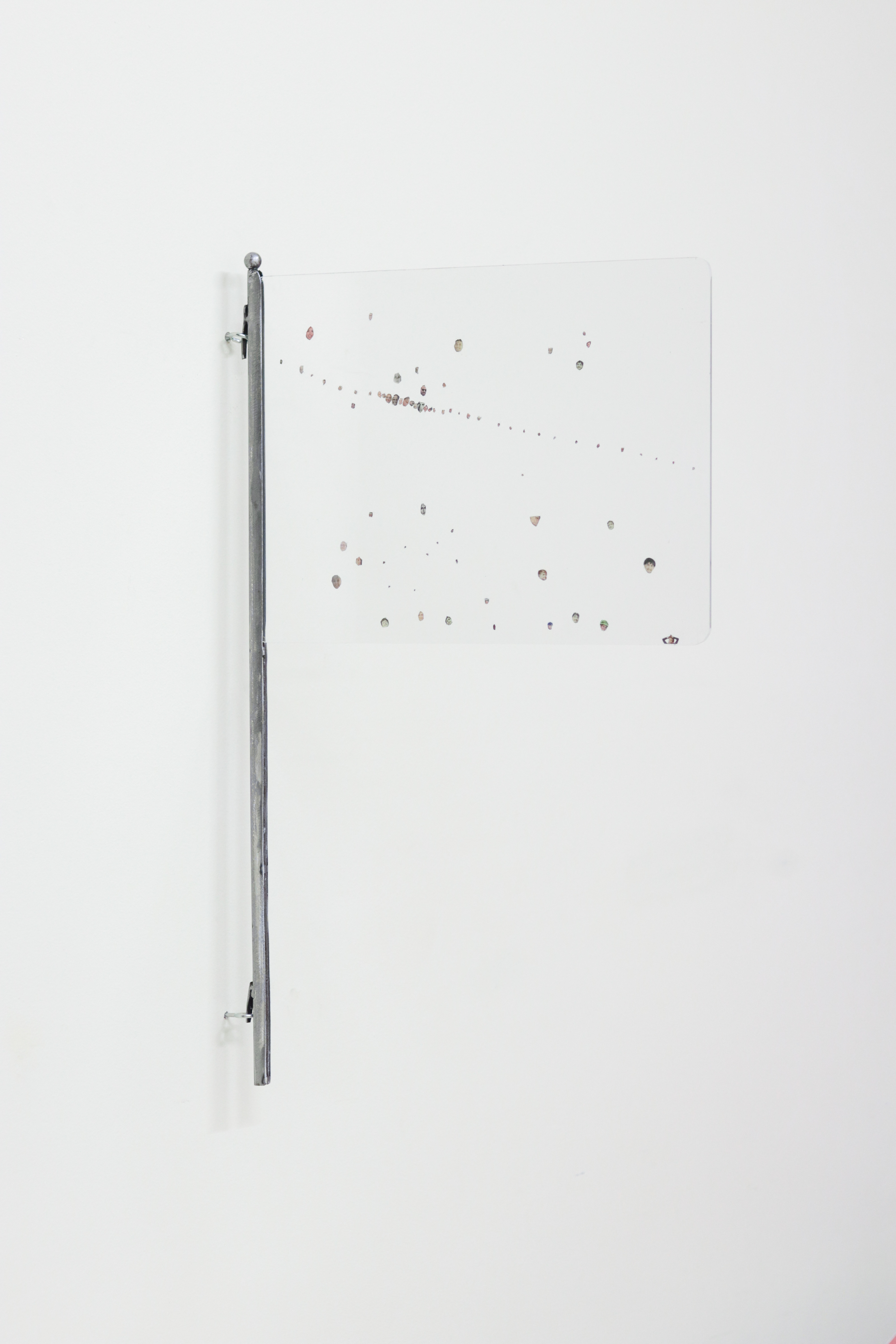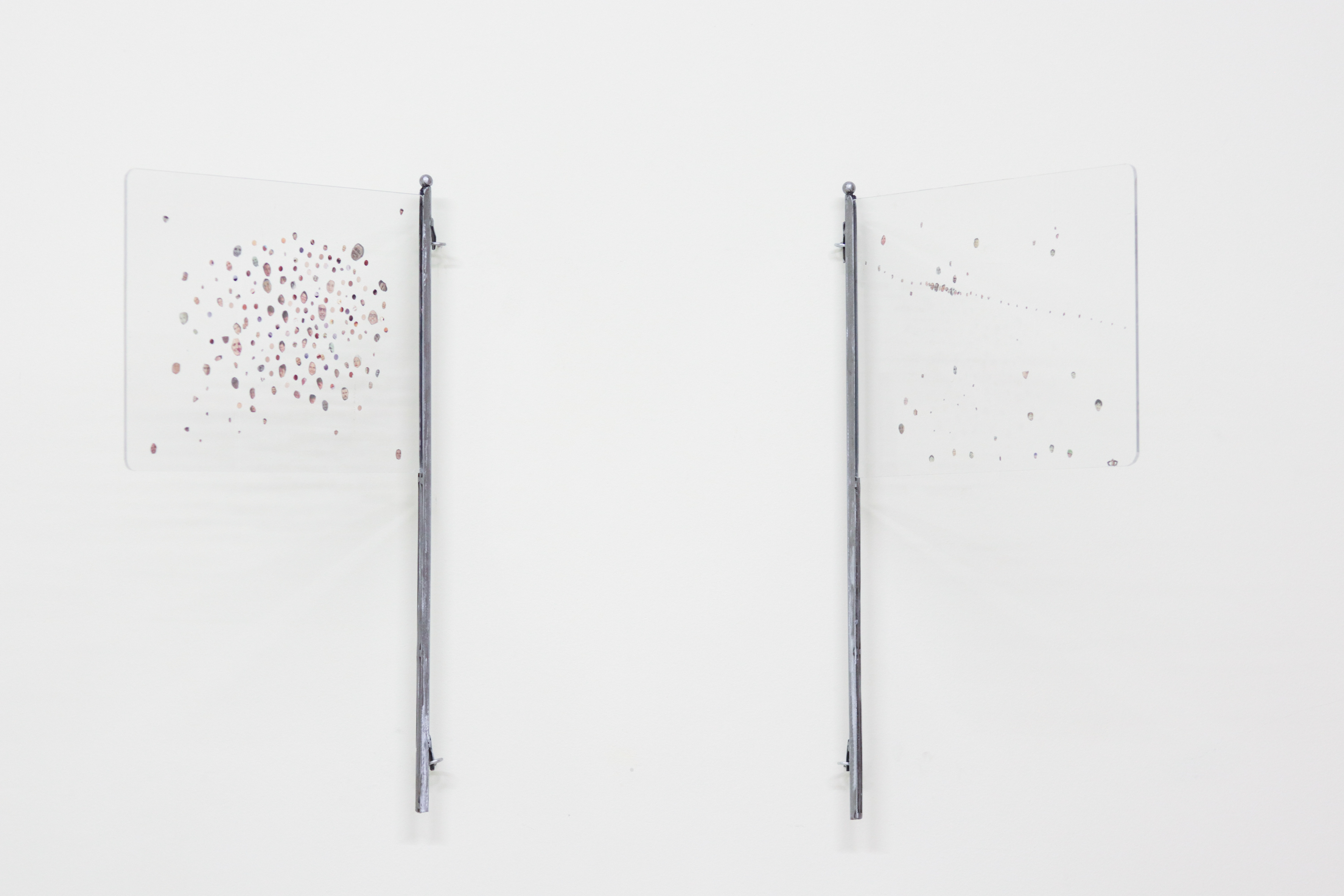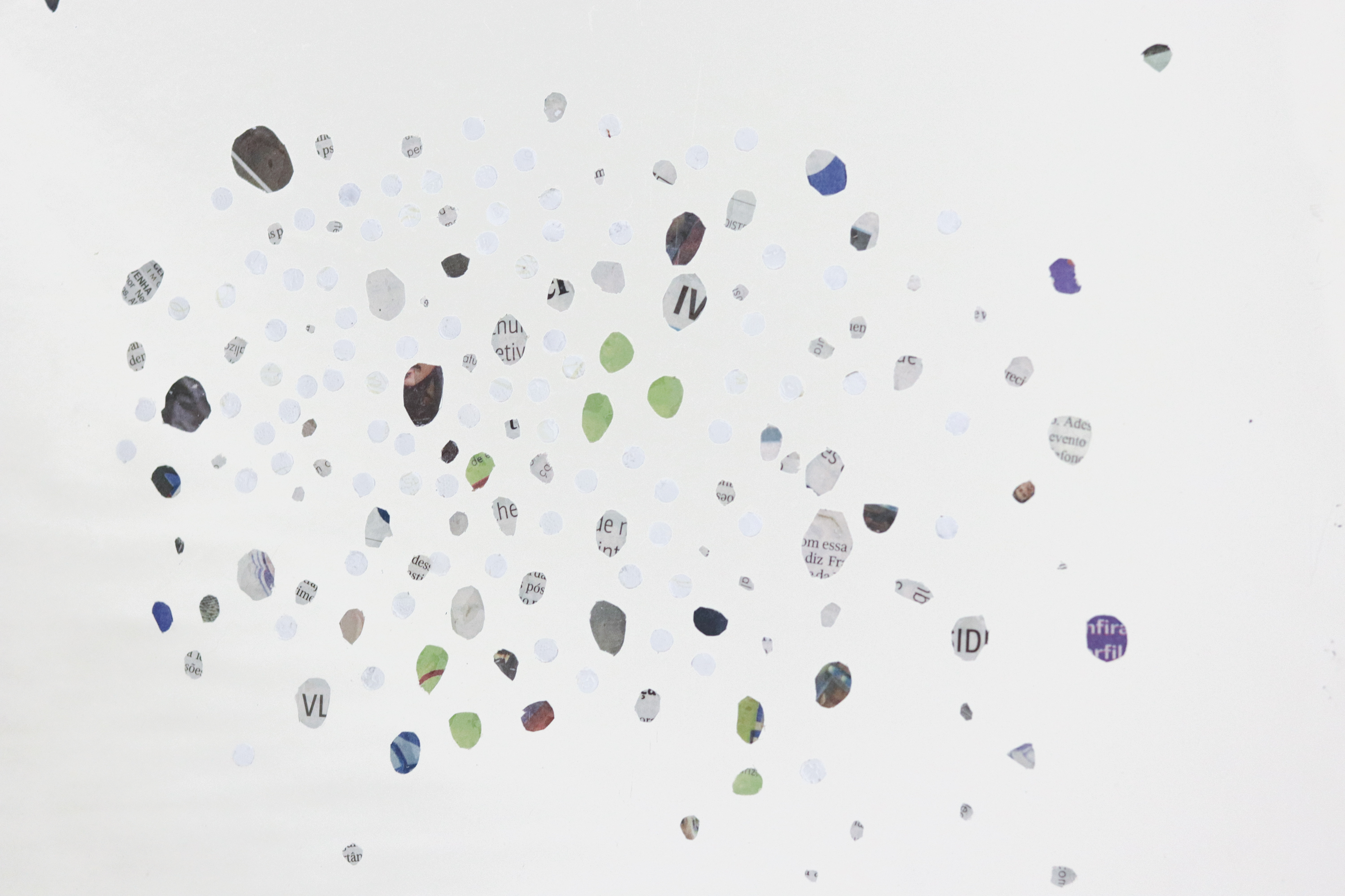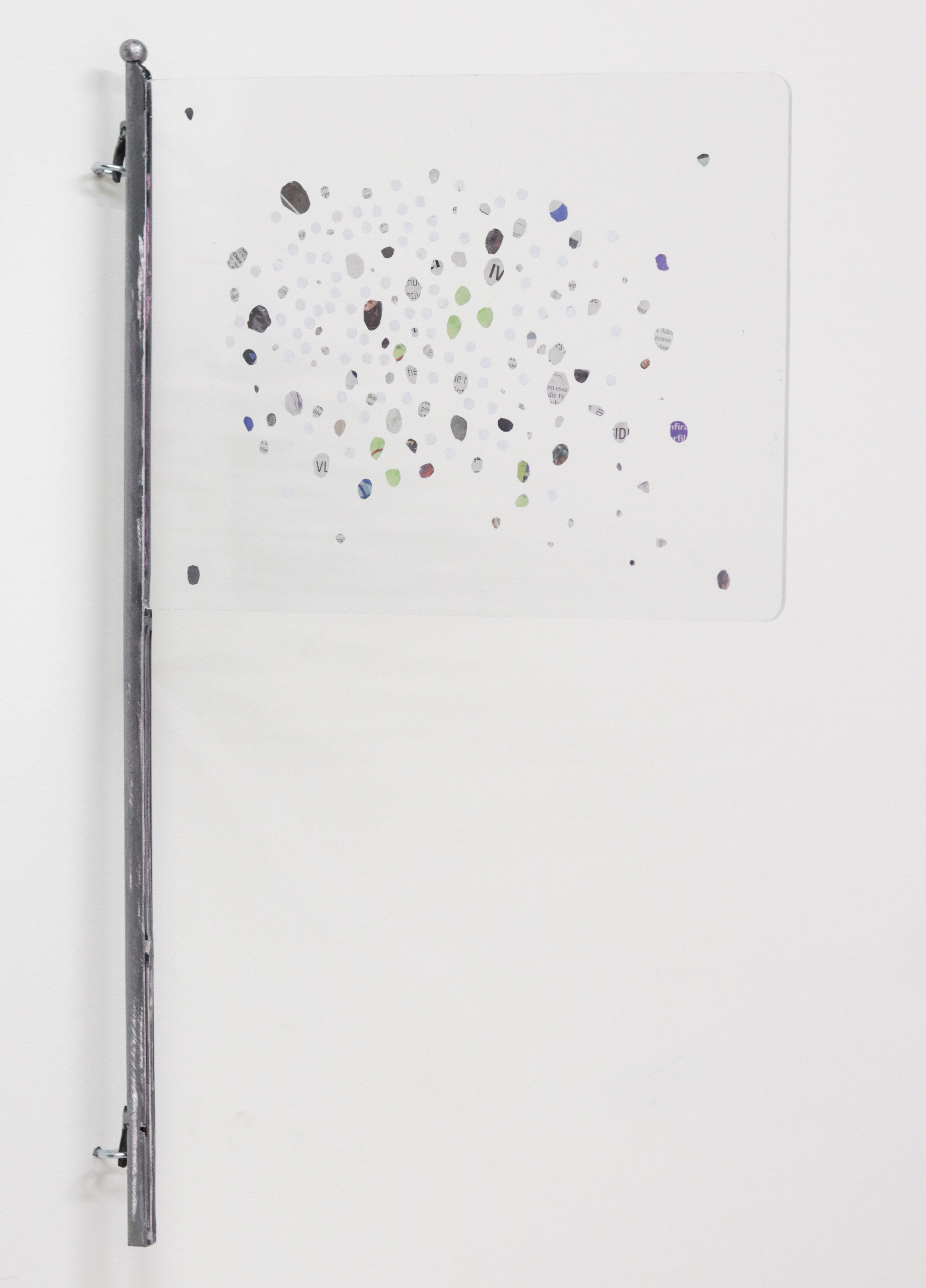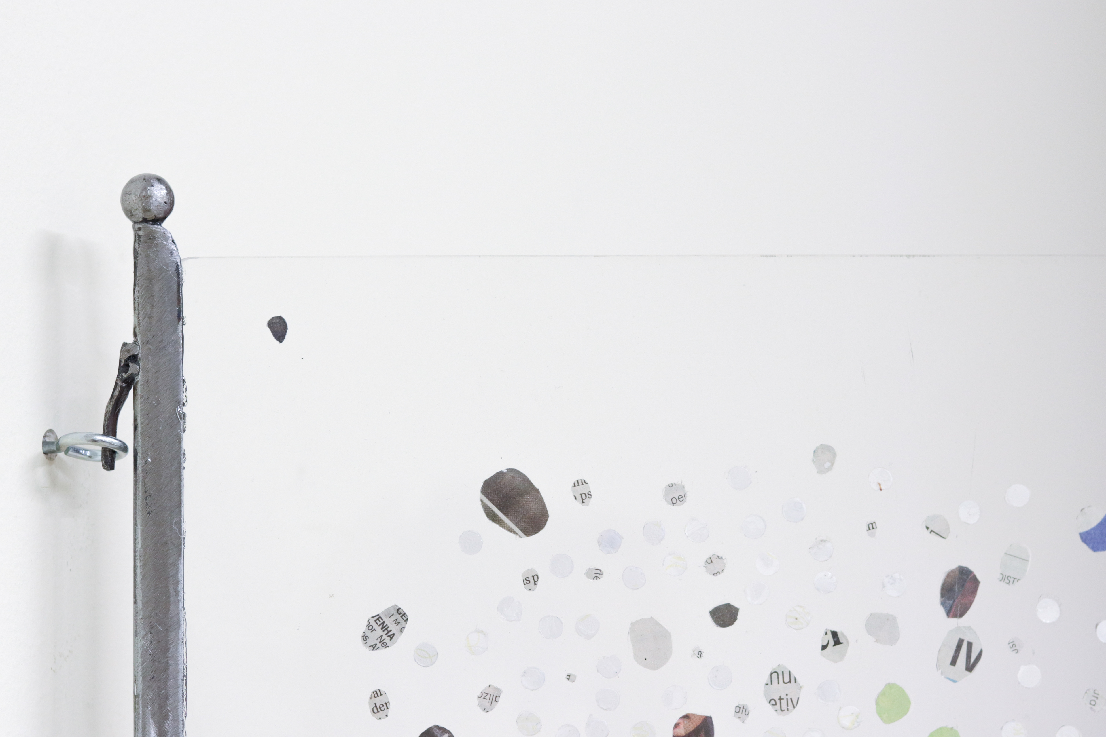 Acrílico e ferro soldado com recortes dejornal